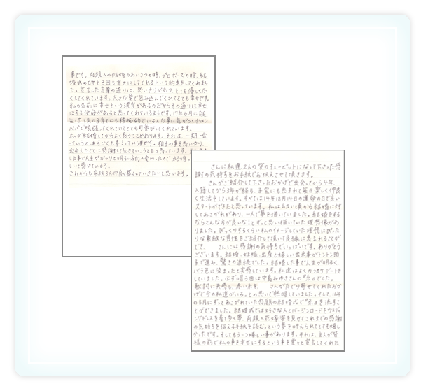 来夢先生に私達2人の愛のキューピットになって下さった感謝の気持ちをお手紙で伝えさせて頂きます。